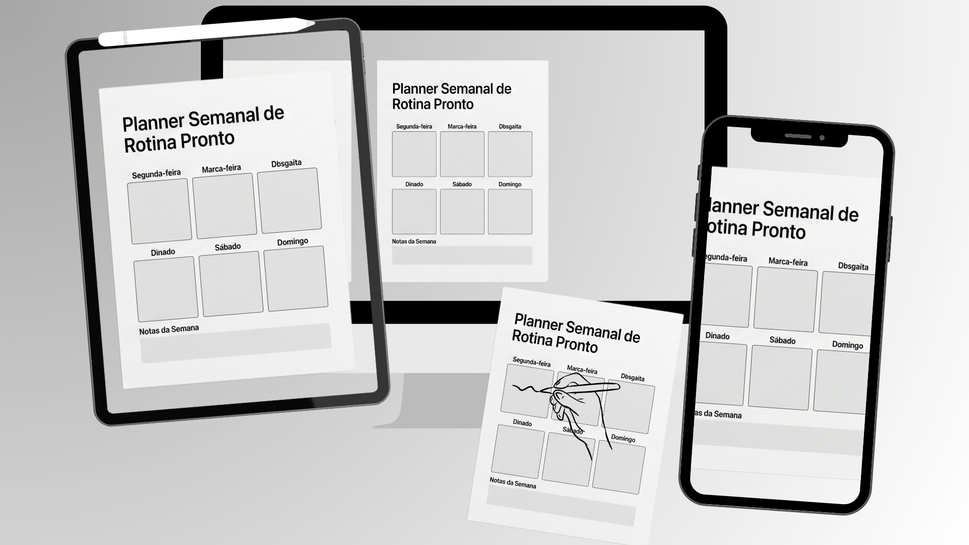 Um planner já estruturado para você organizar sua semana inteira de um jeito visual e fácil. Você vai saber exatamente o que precisa acontecer em cada dia, sem precisar pensar do zero toda semana.