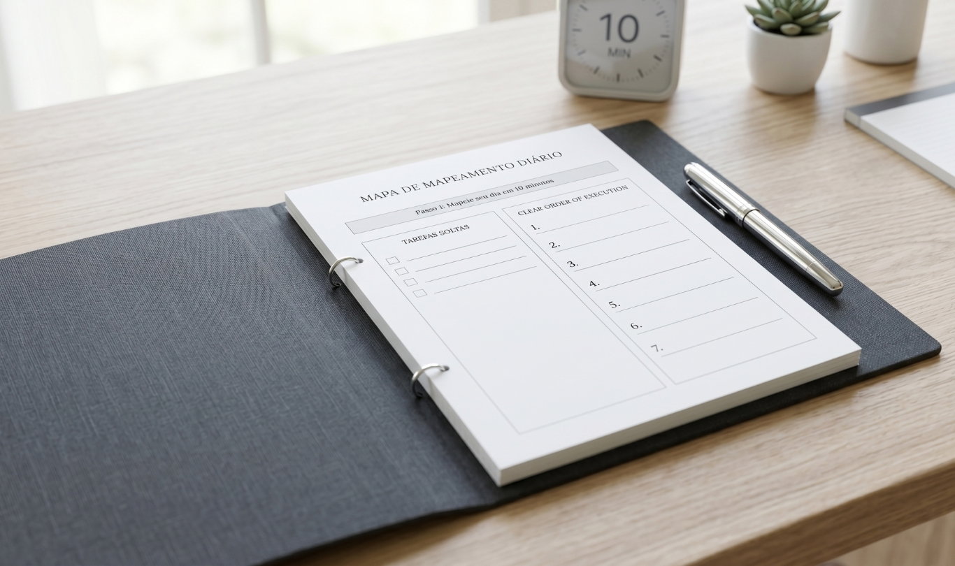 Pegou o material, abriu o Mapa, preencheu em 10 minutos. Seu dia já começa diferente.